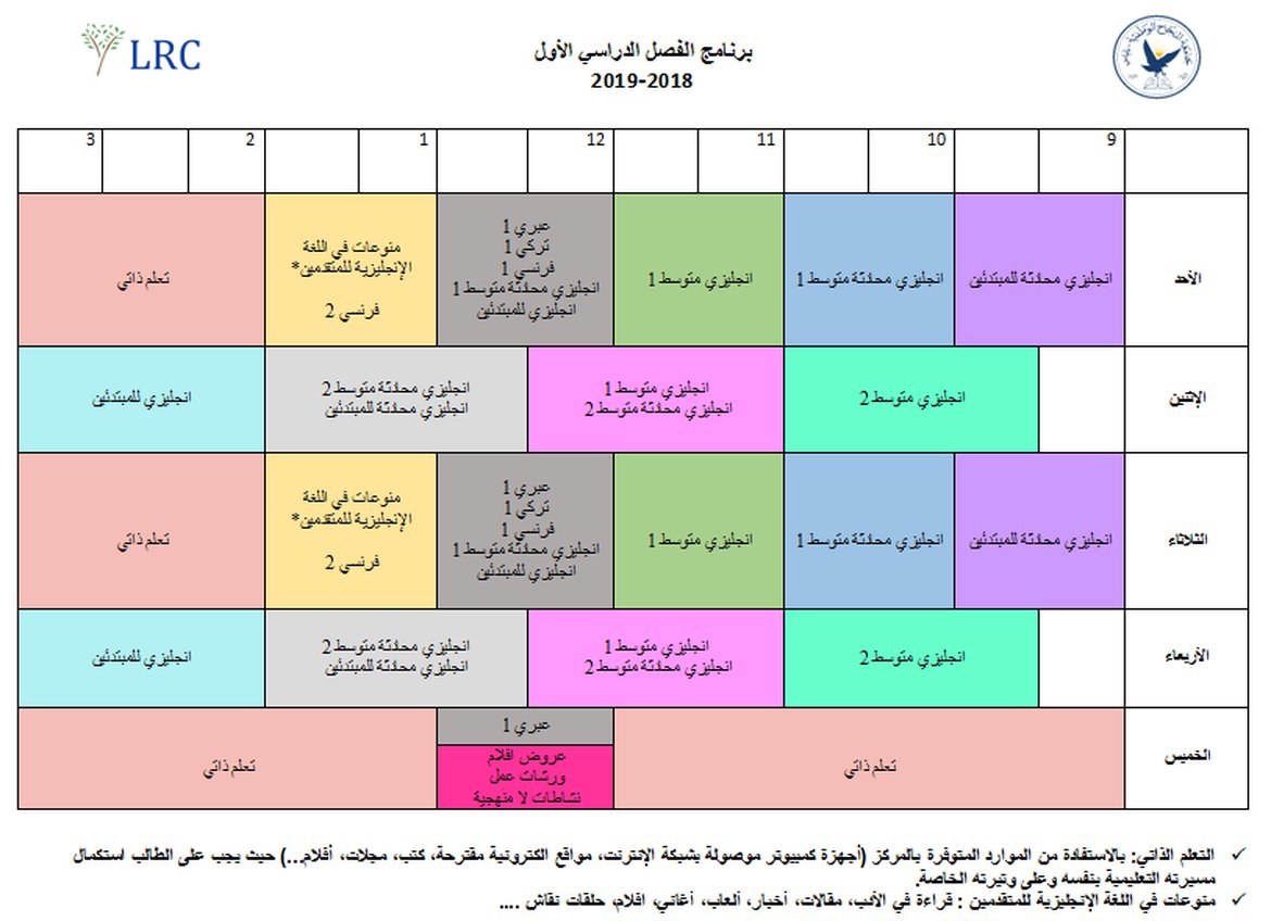 • المكان: مركز الموارد التعليمية للغات، الحرم الجديد، مقابل كلية التربية الرياضية.